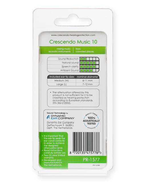 Crescendo Music 10 Des embouts auriculaires très discrets avec des filtres acoustiques qui atténuent le son à une moyenne de 10 dB. Votre env...