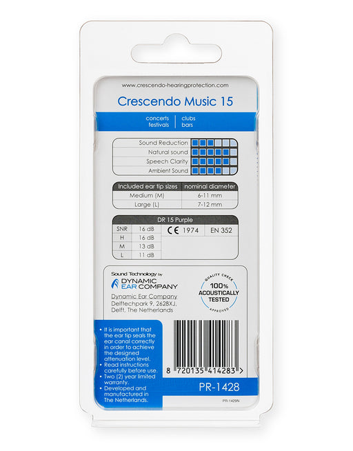 Afficher tous les détailsCrescendo PRO Acoustic 15 - Bouchons pour musiciens