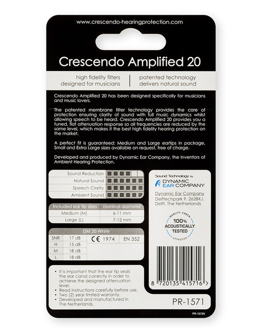 Crescendo Music 20 Spécialement conçu pour les amateurs de concerts et les amateurs de musique. Les filtres à mailles acoustiques du Crescend...